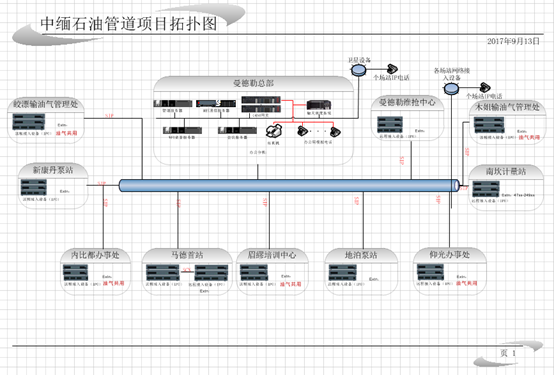 中緬原油管道中心點MES服務(wù)器與G450媒體網(wǎng)關(guān),中心點采用MES雙機備份的架構(gòu)進行建設(shè)。整套設(shè)備具備高可靠性、高安全等特性。個分支機構(gòu)采用IP office500,設(shè)備具有部署方便、配置靈活等特性。全網(wǎng)采用全SIP組網(wǎng)方式到中心點的方式,用戶數(shù)量超過2000人。
